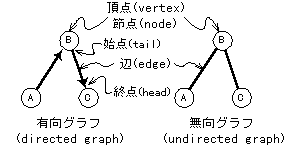- v は辺 (v, w ) の始点(tail)、w は辺の終点(head)と呼ばれる。